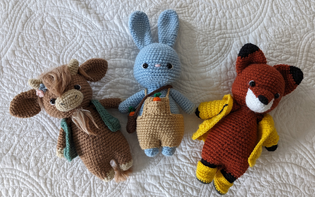 This bundle includes Hamish the Highland Cow, Benedict the Bunny and Fenna the Fox