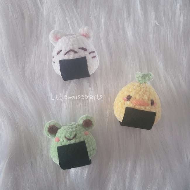 This pattern will teach you how to make your very own Animal Onigiri Set! I use 2mm thick chenille yarn and a 3mm crochet hook. You will need some fabric felt for this too. This pattern works up quick and is easily customizable to express your own creativity!