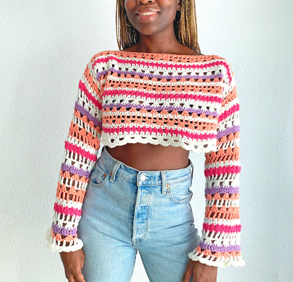 Cómo tejer jersey de ganchillo para mujer, jersey de ganchillo con mangas largas. Para principiantes en español. Diseño adaptable, ajusta el patrón a tu talla y elige los colores que más te gusten.