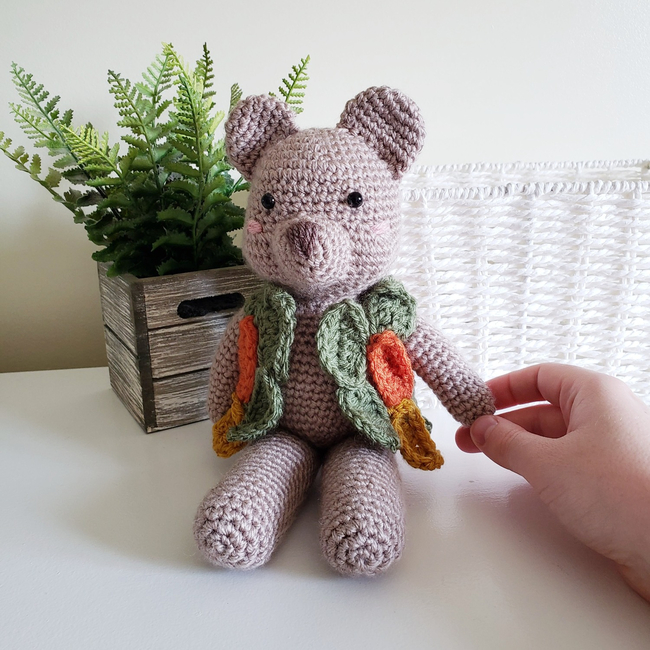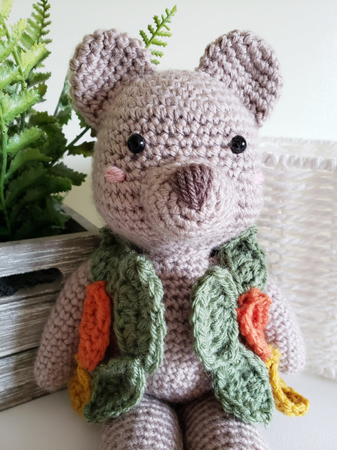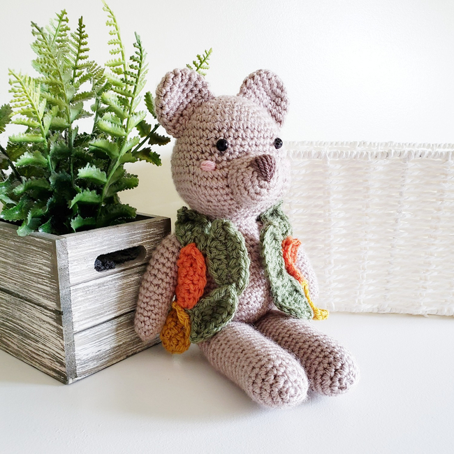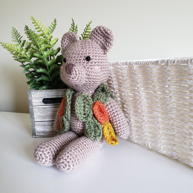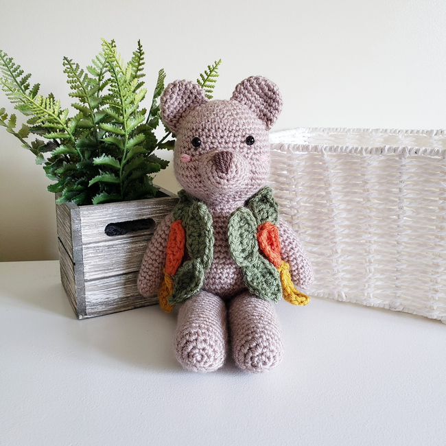 Get ready for fall with this intermediate level crochet pattern to create your very own handmade Aspen the Bear! The color possibilities are endless! You could make the leaves out of so many different beautiful colors for fall! Feel like a little fairy lady making your forest creatures clothes when you are making Aspen's leaf vest!
