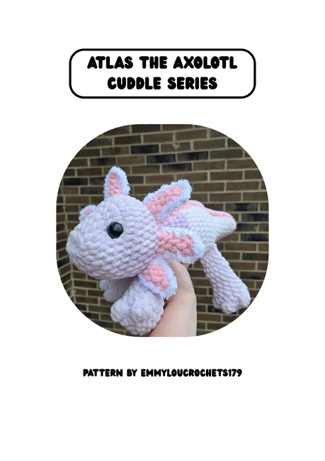 Atlas the Axolotl is an Intermediate Crochet pattern designed by Crochet by Emmy Lou Roch for making an Amigurumi. Hi and thank you for your support for purchasing my pattern. Please do NOT copy, distribute or claim this pattern in anyway. If you would like to post your work on social media please just credit the author of the pattern. You may sell your finish...