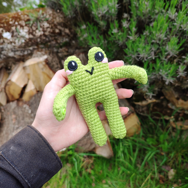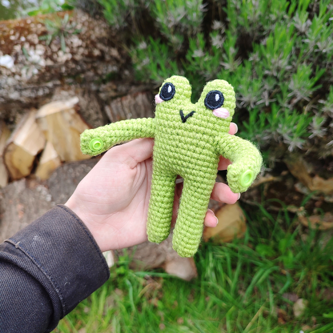 I made this frog with snap buttons in their hands, so that they can be attached to things like the handle of a bag, a chain, a cable, etc...