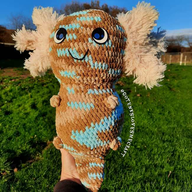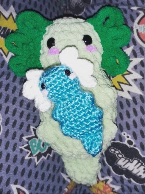 Make a whole family of axolotls with adults and babies together. The parents can guzzle yarn quite a bit but the babies use a small amount so you can make a whole themed family with scraps for variety of babies