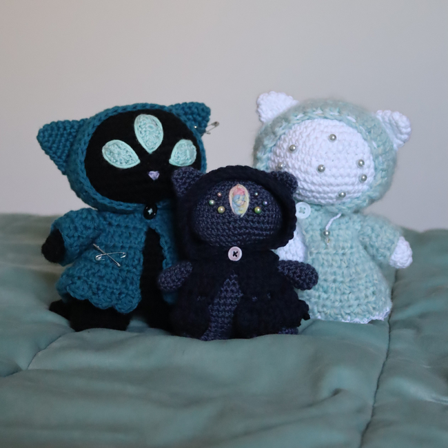 if you love biblically accurate angels or demons and cats then this pattern is for you! the pattern follows the same premise for the two cats, but there are slight differences in how you assemble the amigurumi to resemble the being you want. I recommend making both azazel as well as rosier as to not separate the two frenemies. tag me on insta (mothcrafts) in your finished cats! or dm me if you have any questions about the pattern.