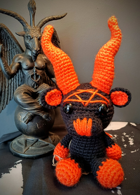 Cultic.Crochet designed the Baby Baphomet pattern. Find more of their patterns on their Ribblr shop page.