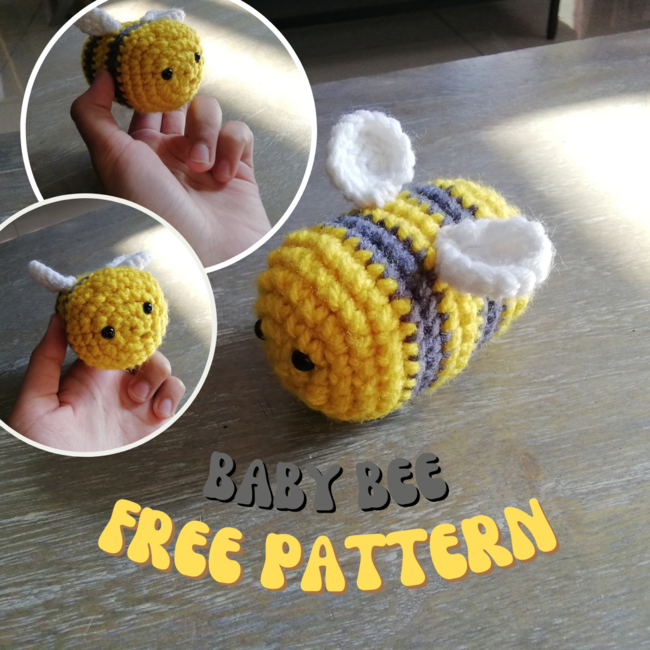 Baby Bee is a free pattern and is suitible for beginner crocheters who can work in a spiral. Any yarn type can be used.