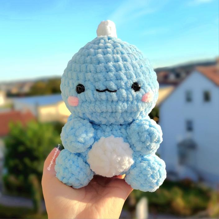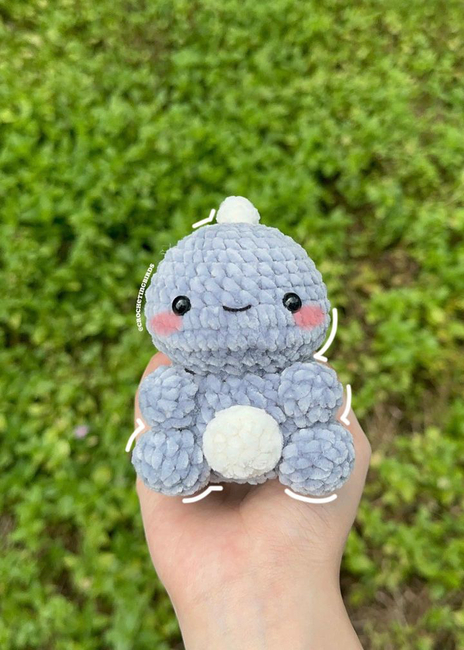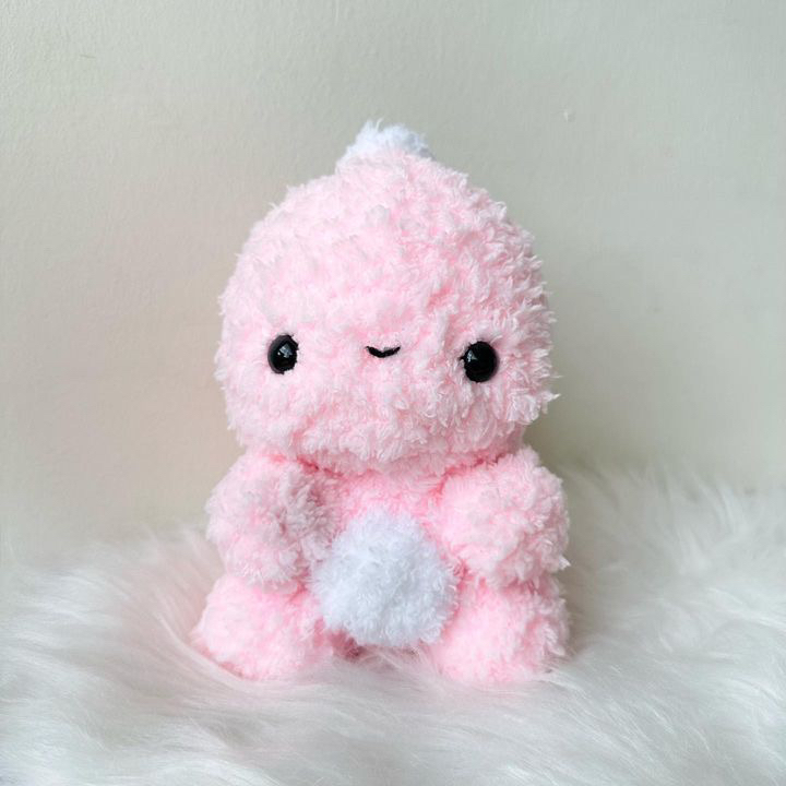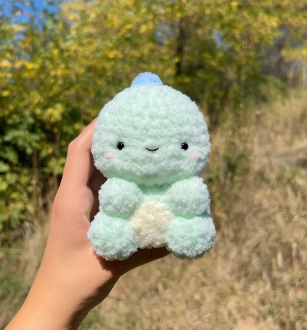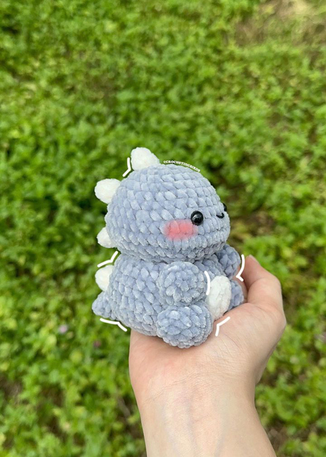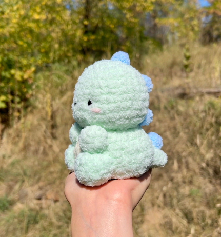 This is a beginner-intermediate crochet pattern for an adorable baby dino plushie!