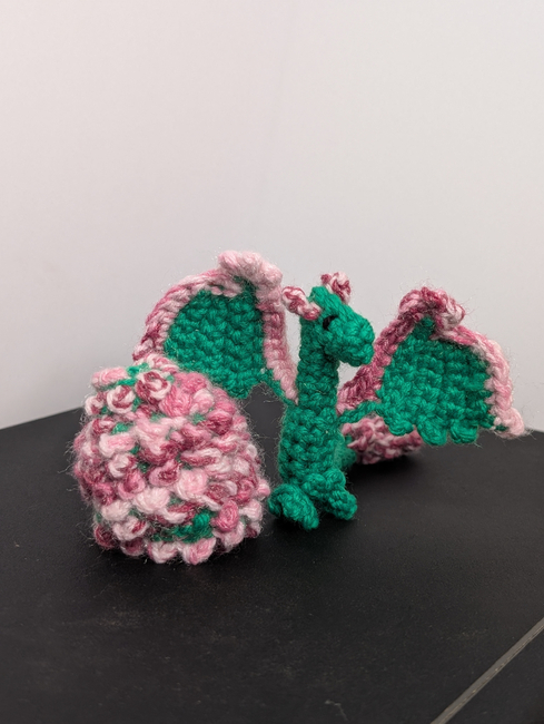 The baby dragon and egg pattern makes a Amigurumi. It is a Intermediate Crochet pattern.