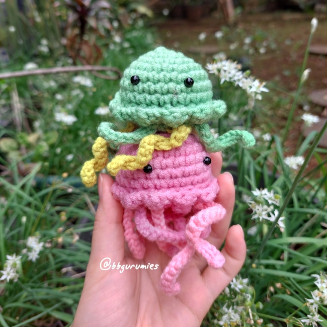 There are so many jellyfish pattern out there but none of them fancy me so I made this free pattern for baby jelly. Please do tag me if you used this pattern so I can see the result. You're allowed to sell the finished product as long as you credit me @bbgurumies as the pattern creator.
