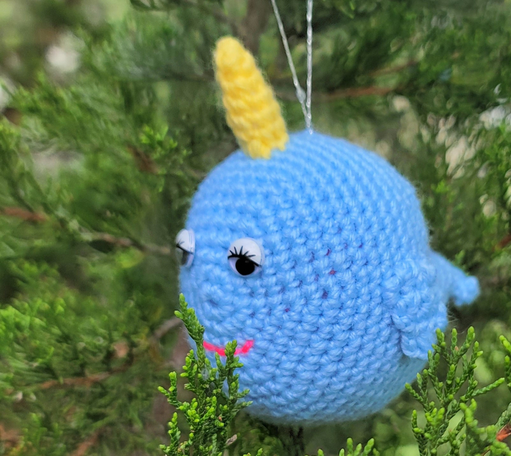 Make your narwhal-loving child an adorable baby narwhal to hang on the Christmas tree. This simple pattern works up quickly in your favorite color of sport weight yarn and can be finished in one evening. Using the same pattern with a double strand of Premier Chameleon yarn and a size H hook, you can create a color-changing Narwhal Plush Toy.