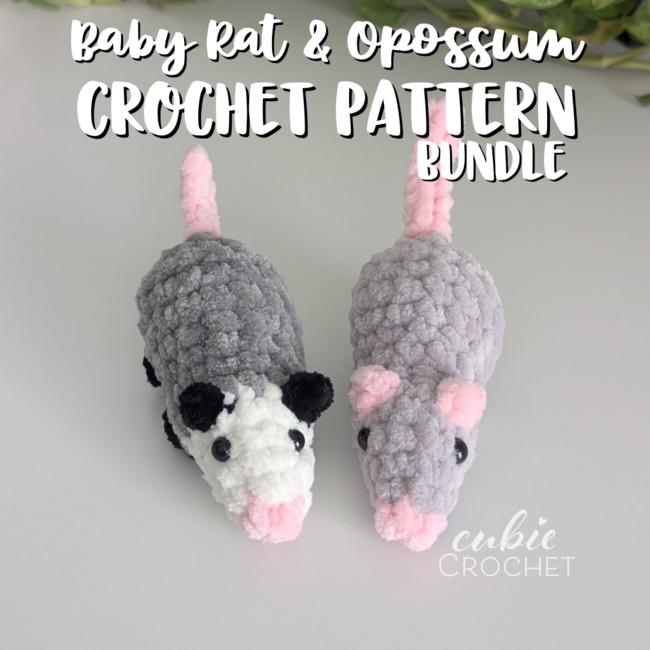This is a Bundle of 2 crochet patterns: No Sew Baby Rat & No Sew Baby Opossum.