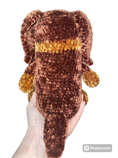 4.5 mm hook, dark brown , brown yarn, sewing needle, stitch markers, Velcro