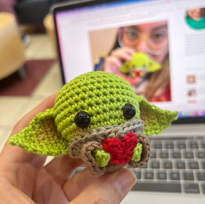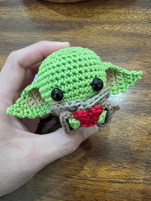 Cute and super easy pattern to make your own Baby Yoda with a little heart!