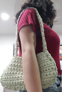 Baguette bag, for beginners, you only need to know how to do chain stitches and single crochet. It depends on the size you want and the size of needle and yarn you have.