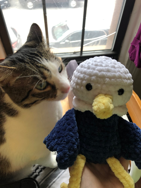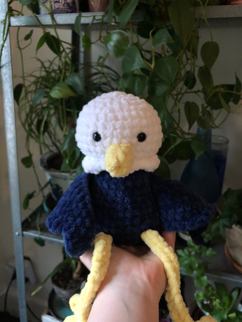 This is a beginner-intermediate level pattern. It has some sewing required to attach the wings, legs, and beak, but the body and head is one piece.