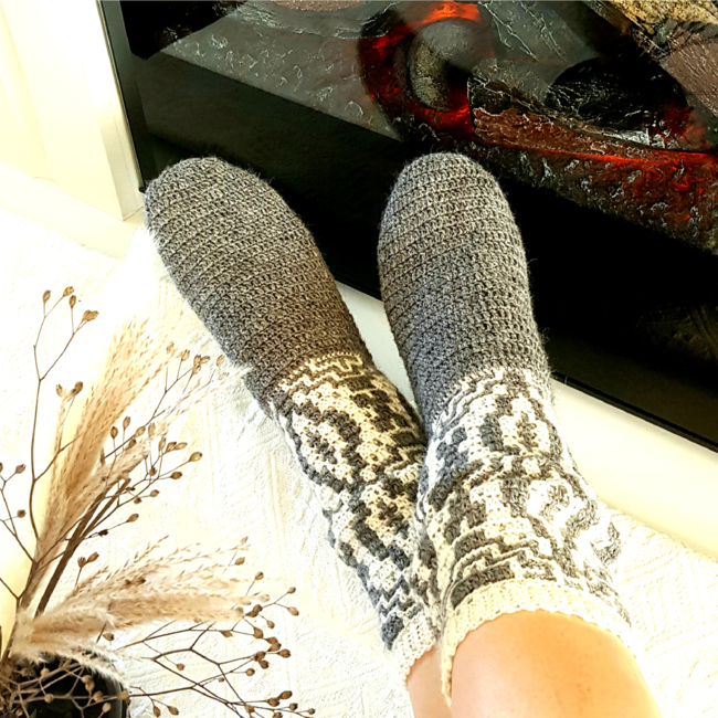 The pattern is really beautiful when completed and will evoke warm and cosy feeling every time you'll wear your slouchy socks!