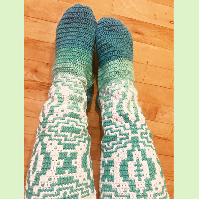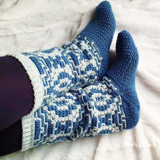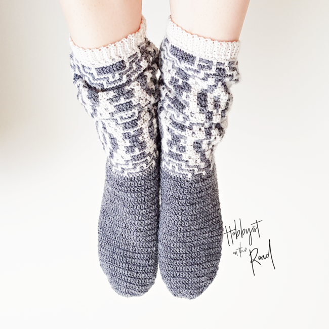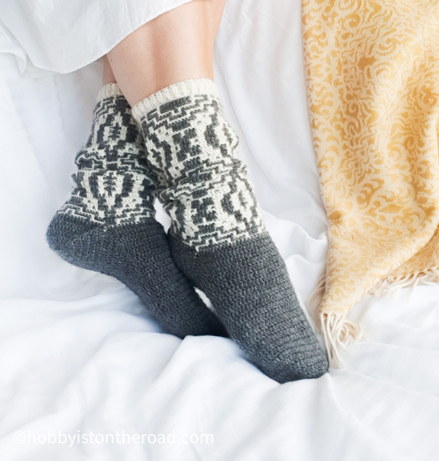 Crochet these soft and cozy Baltic Winds Slouchy Socks for yourself or a loved one!