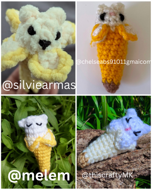 4 crafters have shared their finished crochet makes for Banana cat on Ribblr. 100% of reviewers recommend this pattern. 100% found it easy to follow.