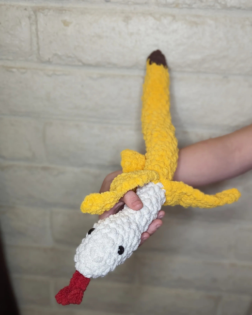 This unique banana snake plushie is a delightful fun treat to make. This pattern is simple enough to complete within an hour or two. This pattern is made with blanket yarn, making it soft, cuddly and full of delectable character.
