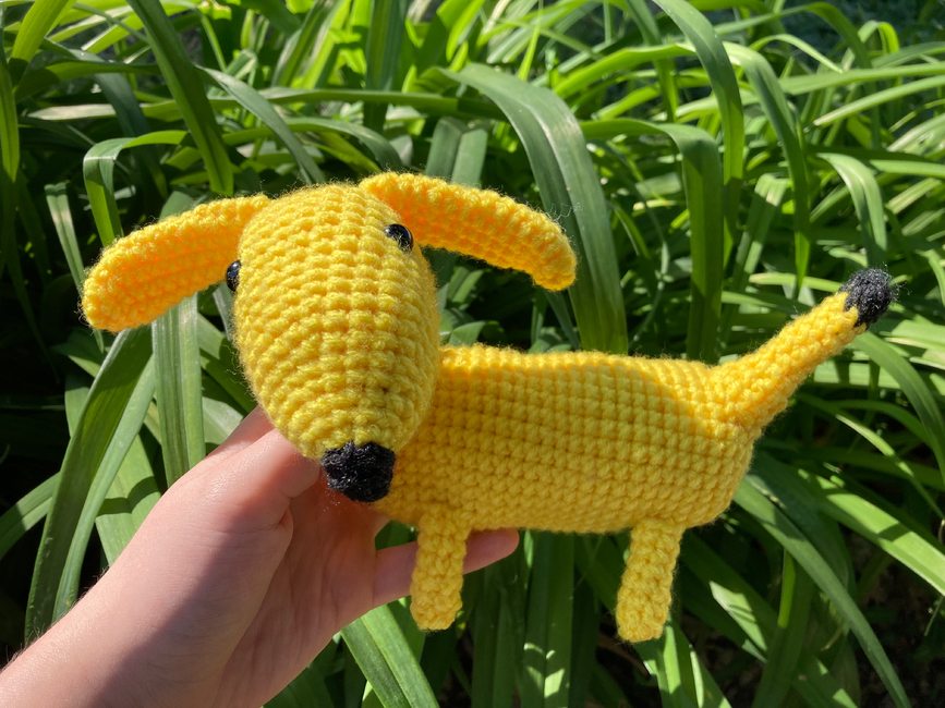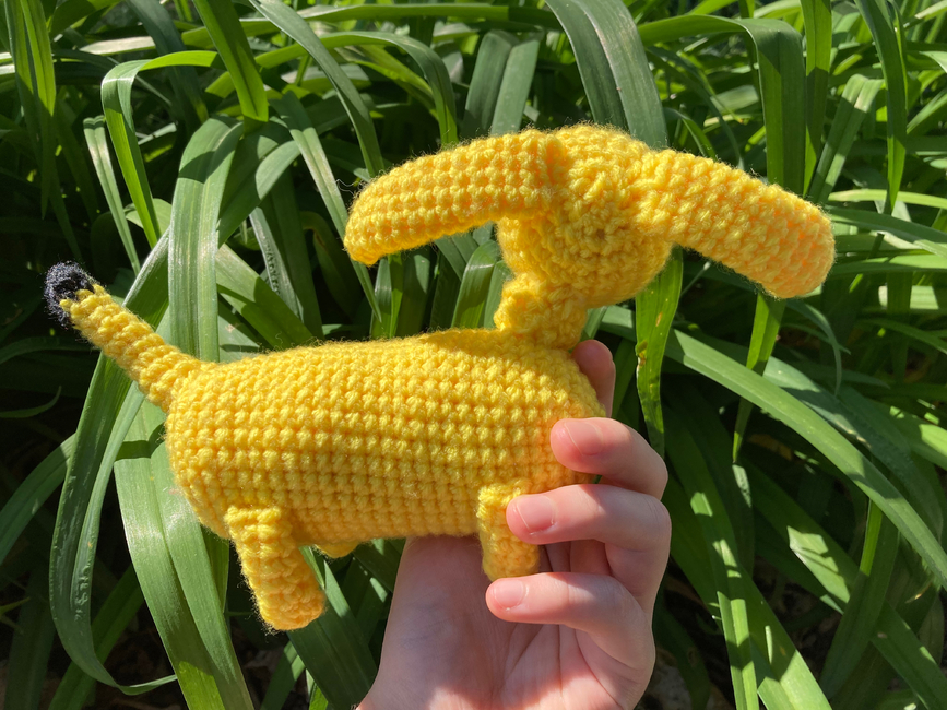 Crochet Banana Wiener Dog.