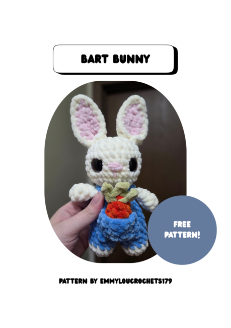 Bart Bunny is an Intermediate Crochet pattern designed by Crochet by Emmy Lou Roch for making an Amigurumi. Hi and thank you for your support. Please do NOT copy, distribute or claim this pattern in anyway. If you would like to post your work on social media please just credit the author of the pattern. You may sell your finished products using this pat...