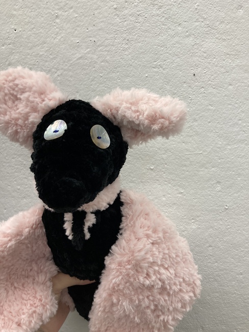 Bartholomew B, Bat is a cuddly friend perfect for halloween or any spooky creatures in search of a fuzzy friend. You will need buttons for eyes I used abalone shell ones for a fun reflective look.