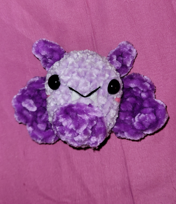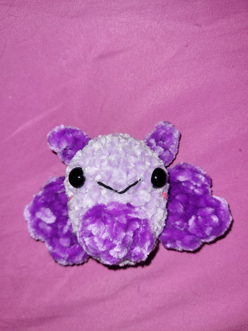 The following pattern is instructions to create a plushie inspired by the Squishmallow Zumirez the Bat.