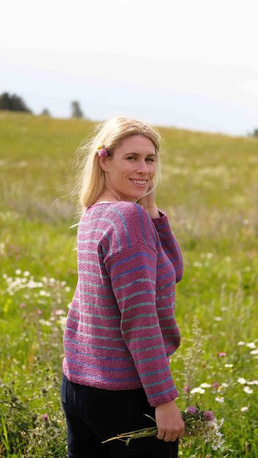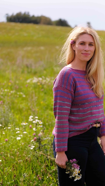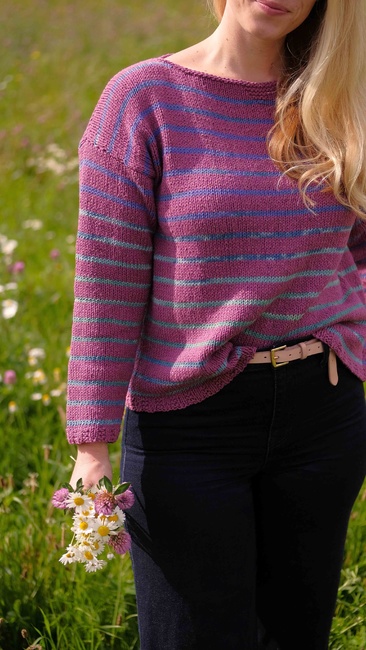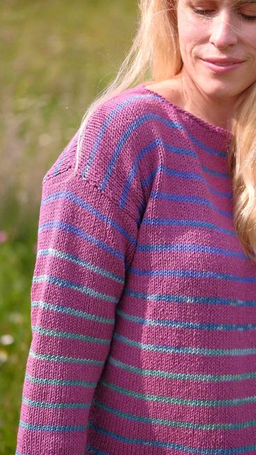 Knit One, Crochet Too designed the Beachcombing Pullover 1204 pattern. Find more of their patterns on their Ribblr shop page.