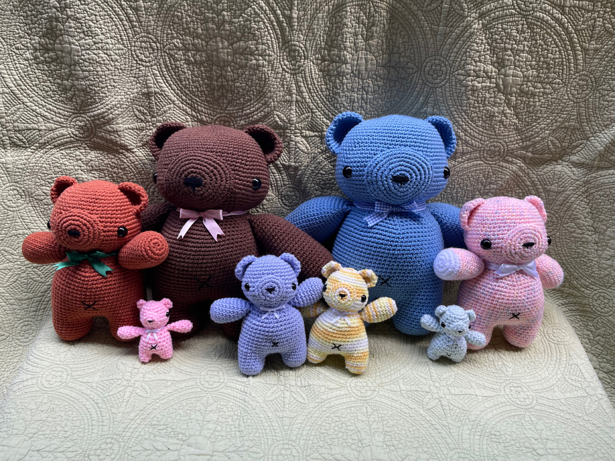 All four sizes of the Sweet Bear pattern series and my spin on the classic teddy bear!