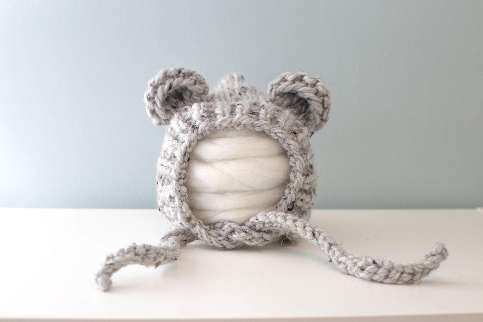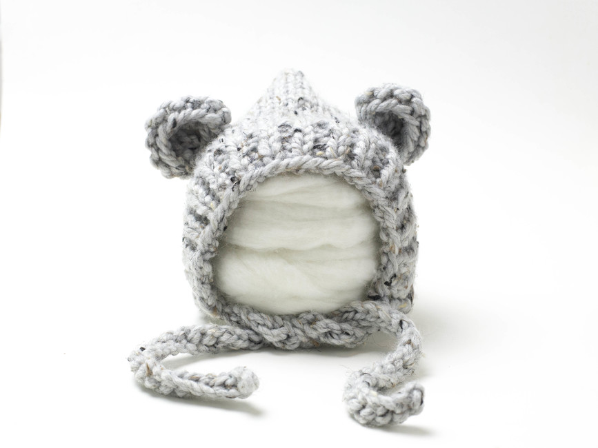 Our sweet bear chunky pixie bonnet winter hat knitting pattern is perfect for making handmade gifts for your loved ones, young and old. Comes in sizes newborn, baby and children.