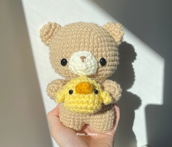 make your own bear + chick duo with this pattern! the bear and chick are separate pieces, so in the end, you can choose to sew them together or just have them not be connected!