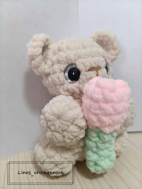 Bear holding tulip