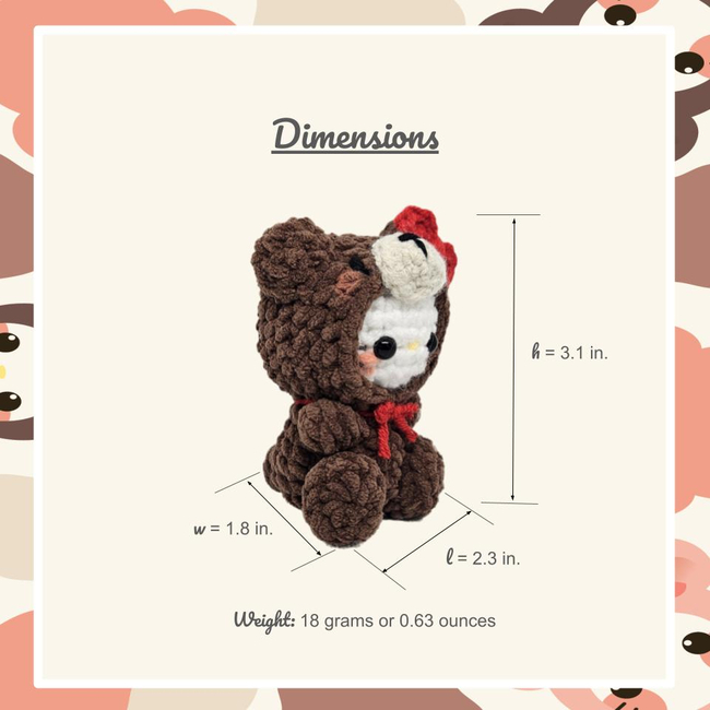 The Bear Kitty Crochet Pattern pattern makes a Amigurumi. It is a Intermediate Crochet pattern.