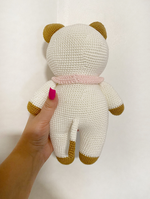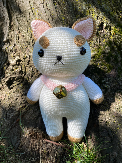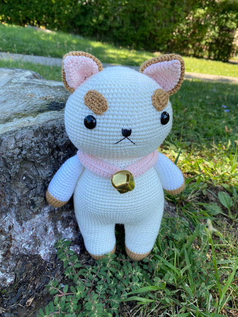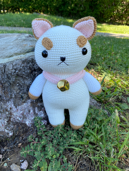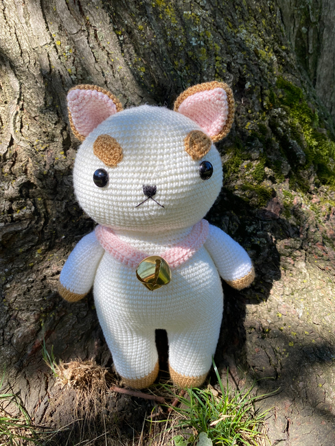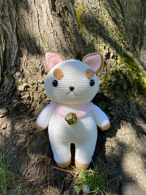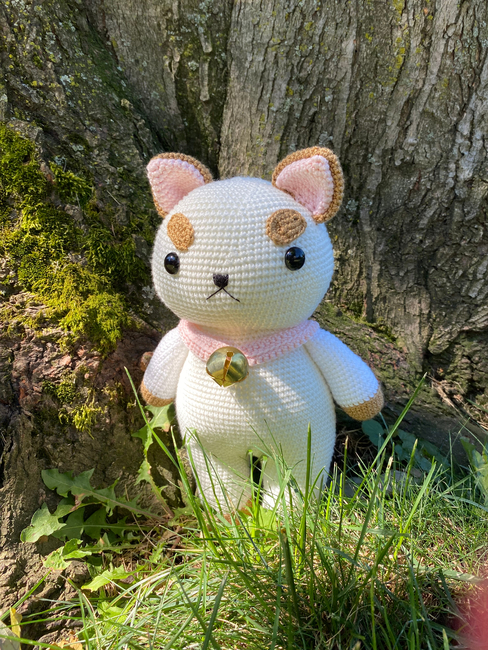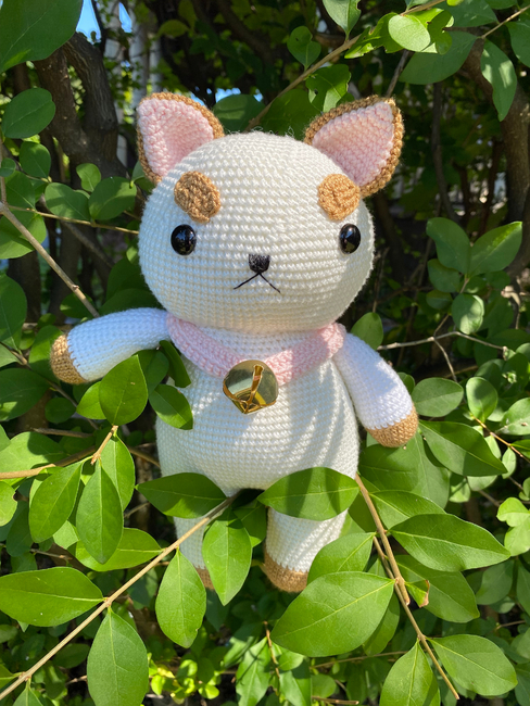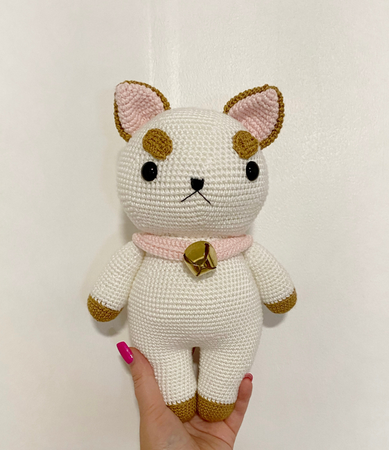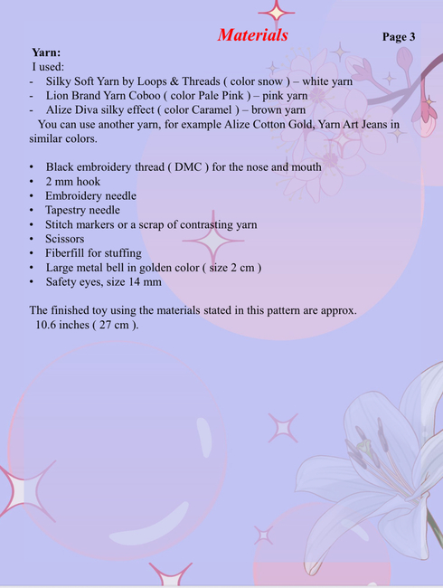 To make Bee and Puppycat character amigurumi toy you will need: Yarn: I used:Silky Soft Yarn by Loops & Threads ( color snow ) white yarnLion Brand Yarn Coboo ( color Pale Pink ) pink yarnAlize Diva silky effect ( color Caramel ) brown yarn You can use another yarn, for example Alize Cotton Gold, Yarn Art Jeans in similar colors., * Black embroidery thread ( DMC ) for the nose and mouth* 2 mm hook * Embroidery needle* Tapestry needle * Stitch markers or a scrap of contrasting yarn * Scissors* Fiberfill for stuffing* Large metal bell in golden color ( size 2 cm )* Safety eyes, size 14 mm.