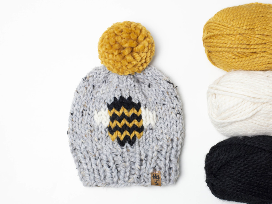 Our chunky bee pompom hat knitting pattern is perfect for making handmade gifts for your loved ones, young and old.