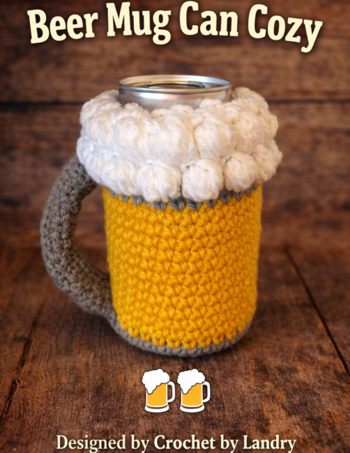 The Beer Mug Can Cozy pattern makes a Accessories. It is a Intermediate Crochet pattern.