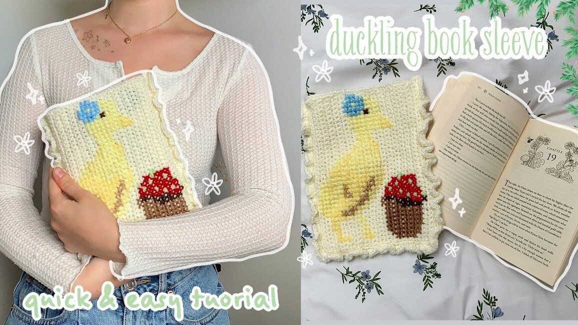 What is beginner crochet duckling book sleeve | cross-stitch on crochet | pixel graph | thisfairymade?