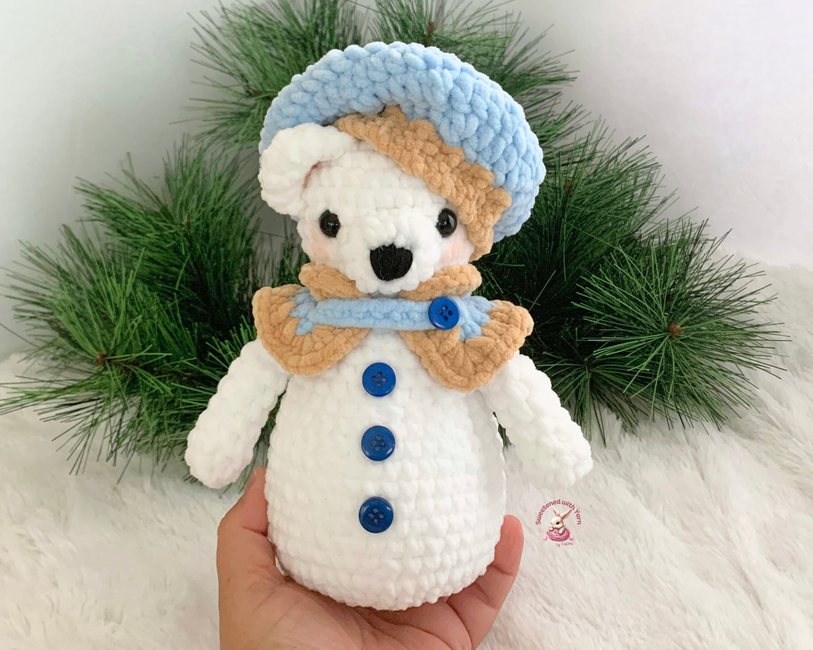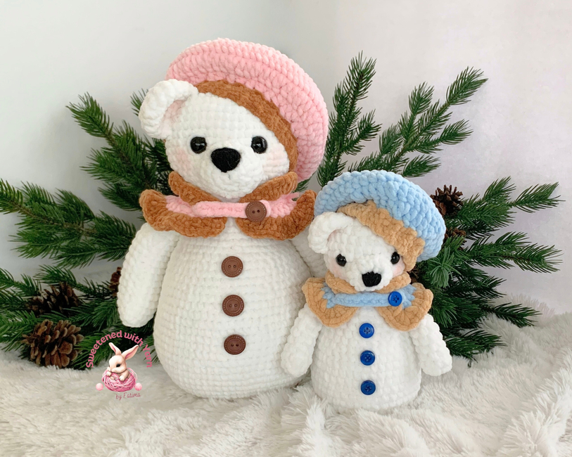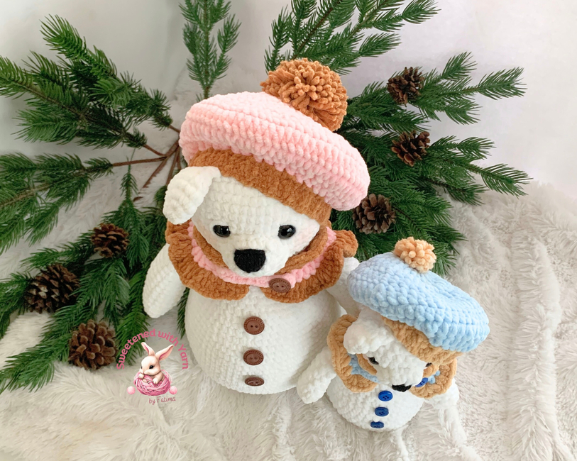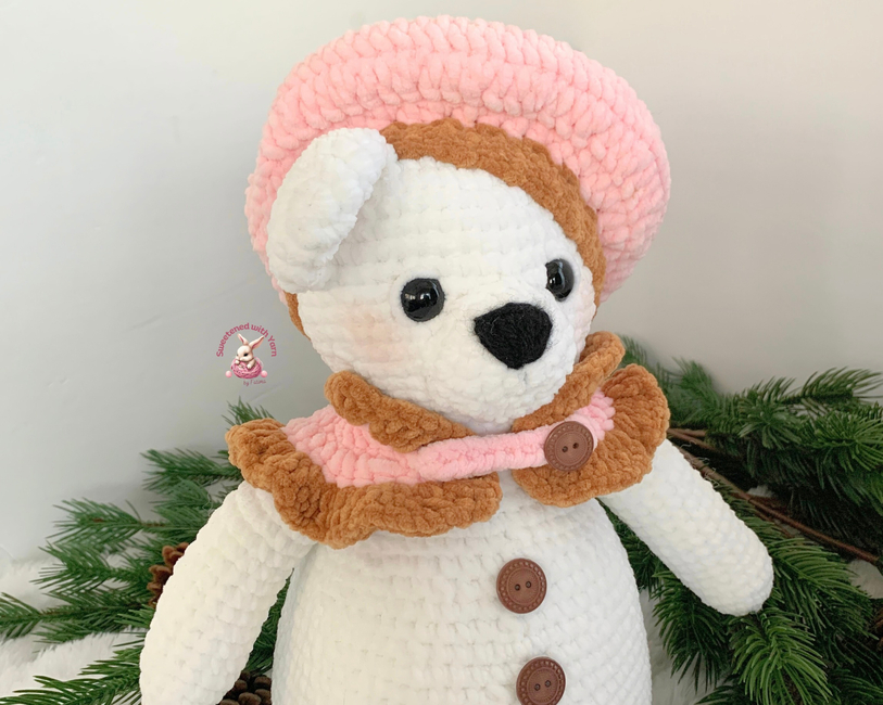 Polar bear meets snow-woman in this magical winter crochet. Belle is fashionably warm wearing her finest Parisian beret and shawl.