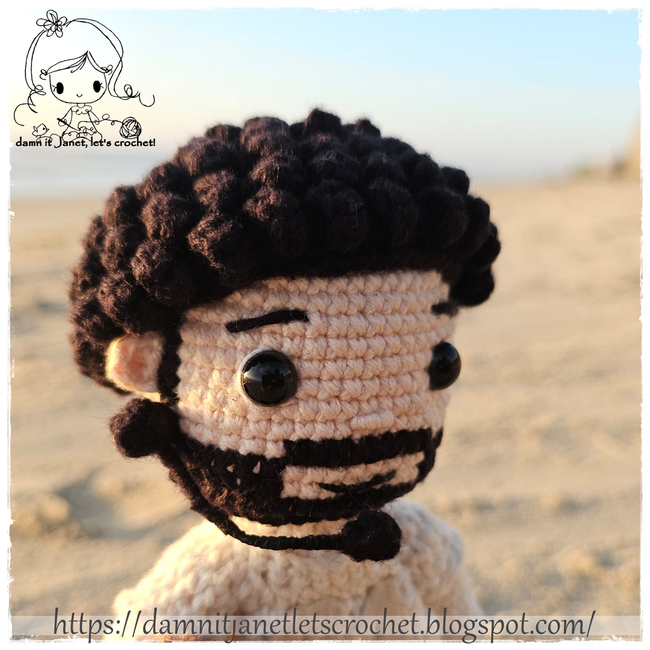 damn it Janet, let's crochet! designed the Benito Super Bowl version (Bad Bunny) Plushie pattern. Find more of their patterns on their Ribblr shop page.
