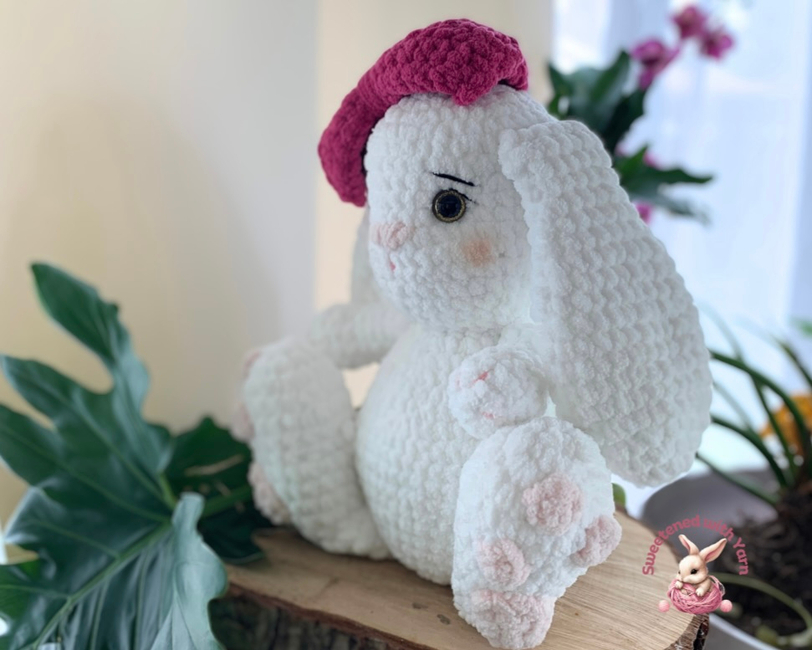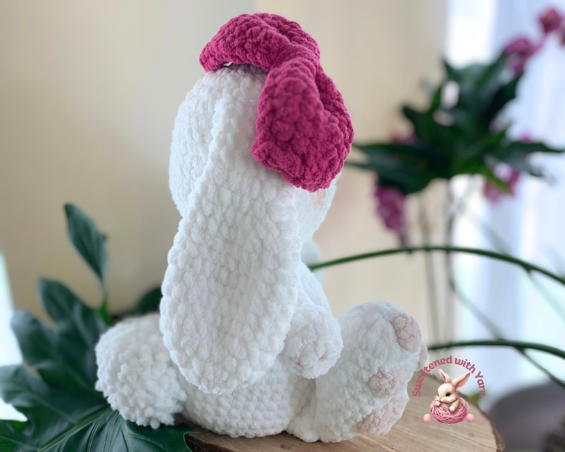 Bentli Bunny is feeling a little camera shy. She'd rather be cuddled than posing for a picture. This bunny needs a little time and some soft yarn and she'll be hug ready!