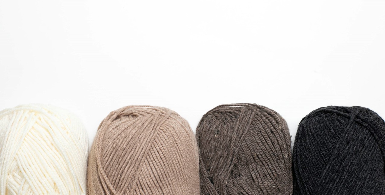 Any medium/worsted weight (4) yarn. The yarn used is Loops & Threads Impeccable. Colors: Aran, Soft Taupe, Walnut Tweed and Dark Charcoal. Other worsted weight yarn options can be found here.