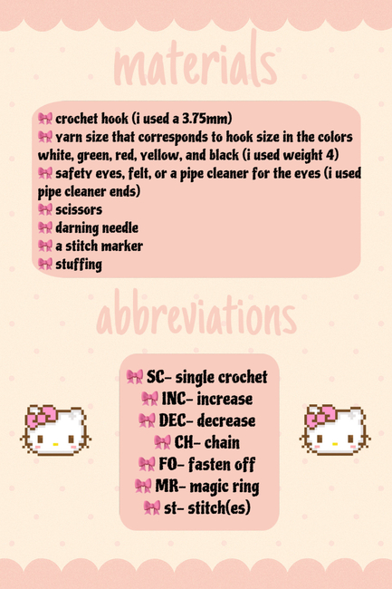 This hello kitty inspired project is perfect for the summer time, or just for strawberry lovers like myself :) This is my first pattern, so if you do try it out please let me know what you think!