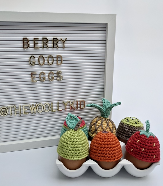 The Woolly Kid designed the Berry Good Eggs pattern. Find more of their patterns on their Ribblr shop page.