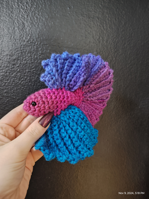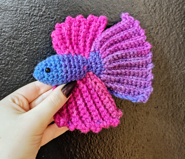 These beautiful bettas made with striped yarn for more natural looking color changes are great for fish lovers Aka my toddler who requested 'a purple blue fish' inspiring me to create this