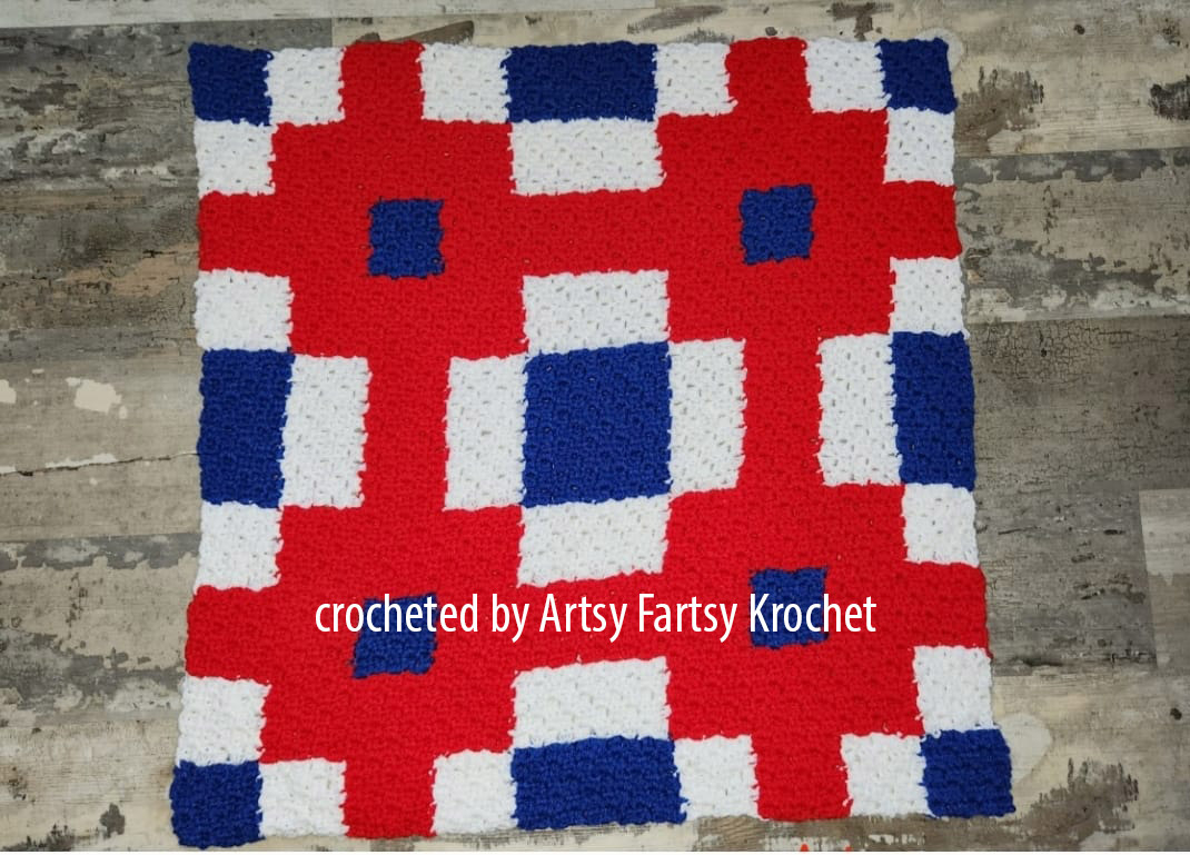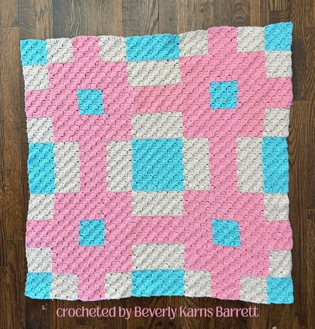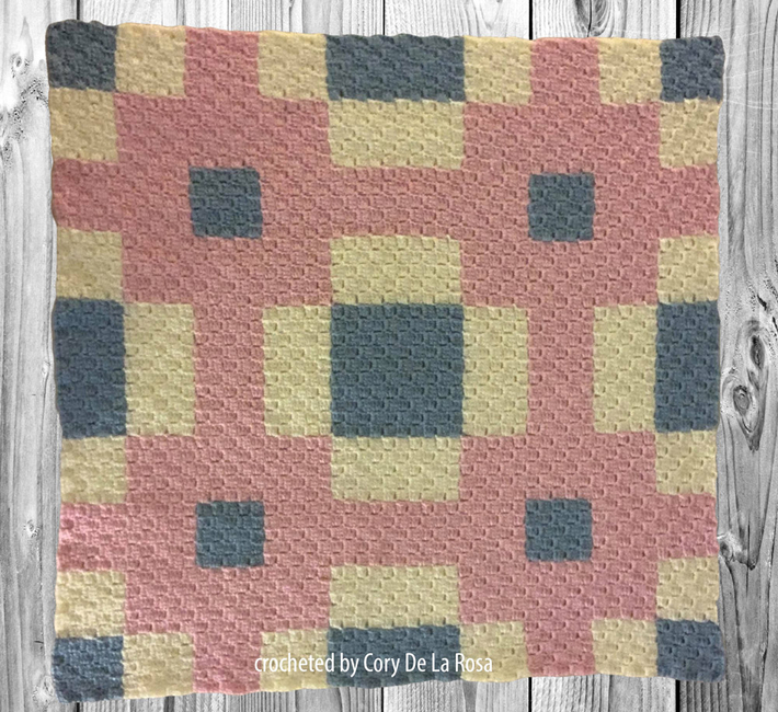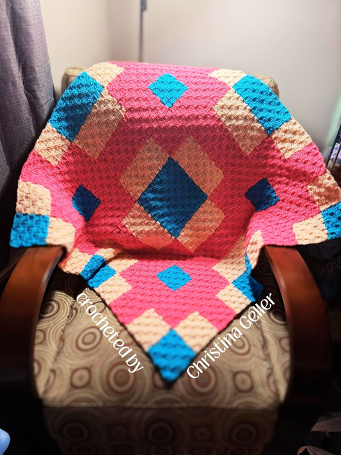 The Crochet Couch designed the Beverly Small Quilt Afghan C2C pattern. Find more of their patterns on their Ribblr shop page.