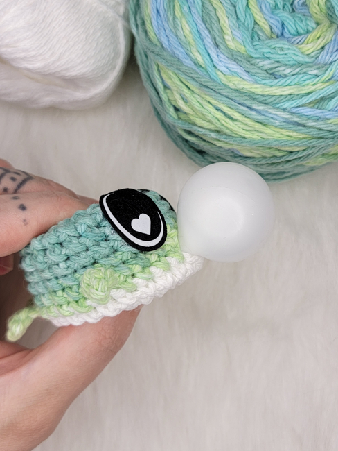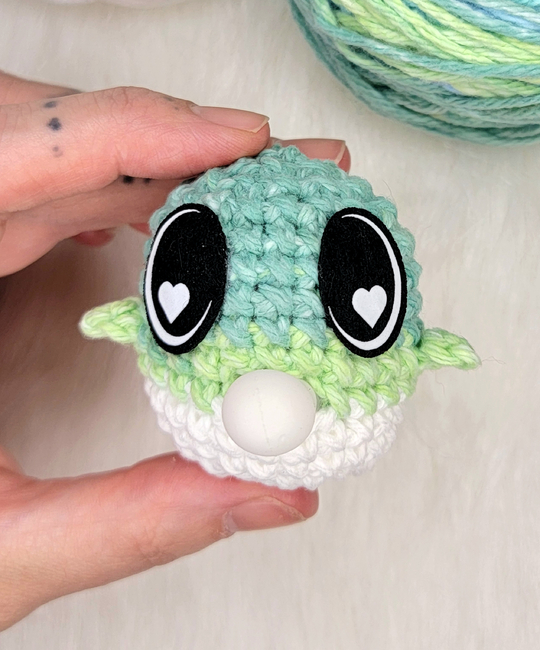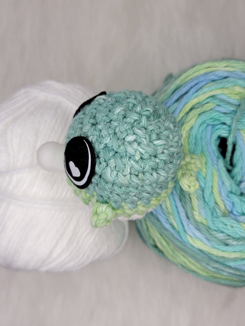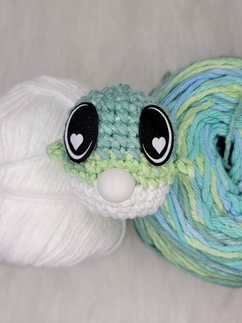 To make Big Head Bubble Fish you will need: stitch marker, bubble insert- you may also try a mini stress ball or even a balloon instead., felt eyes OR embroidery thread. Tools required: 3.5 mm hook - adjust as needed based on tension- Increase hook size if your tension is very tight, or decrease if it@qs loose, tapestry needle.