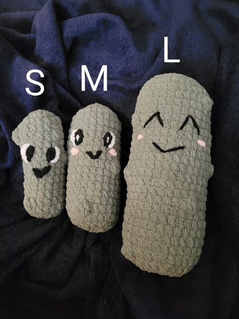 I'd been in a pickle searching for the perfect pickle pattern so I figured I'd make my own! I also went a little pickle crazy and made 3 different sizes so this one is the BIG one of my pickle patterns available, the daddy of the pickle family if you will. And I only put intermediate for the bobble stitch, but if you already know how to do that and are an amigurumi pro, this pattern will be more beginner level. While many pickle patterns are made in similar ways, please don't try to pass of my own work and pattern as your own. But absolutely feel free to sell makes from this pattern! Happy crafting and don't forget to message me if you have any questions, comments or concerns! :)