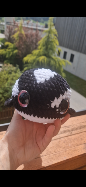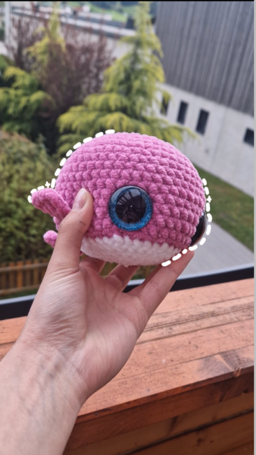 Hello, this is a homemade pattern, so I didn't borrow it from anyone else. I'm really glad you're checking out this pattern and want to give it a try. As a little motivation to crochet: it doesn't take that long to make this whale, and the result is really cute.