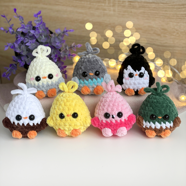 Create your own adorable flock of 7 different birds with this easy, low-sew crochet pattern bundle! This set includes patterns for a chicken, mallard (wild) duck, flamingo, eagle, pigeon, penguin, and budgie all designed to be quick, beginner-friendly, and super cute. Each bird works up in just 25-40 minutes, making them perfect for craft fairs, gifts, or personal collections!