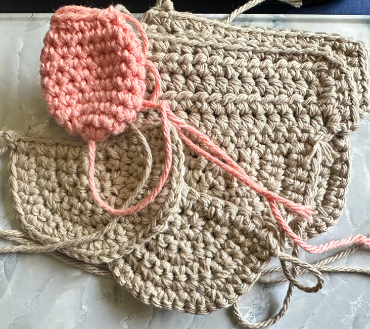 This breast is made in the round with most parts being continuous, making this project low sew. This pattern contains single and half double crochet stitches. I have previously used Sugar and Creams Cotton yarn to make most of the Aids that I sell. The most natural colours for skin tones I have come across are Ecru, Warm Brown, Jute and Coral Rose.